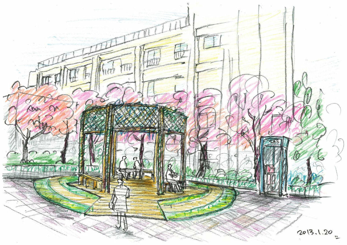 地域を見直す作品展にも生かせるように、現在ブロック塀を取り壊したところがあるのでそこに植樹し、緑をつなげたい。